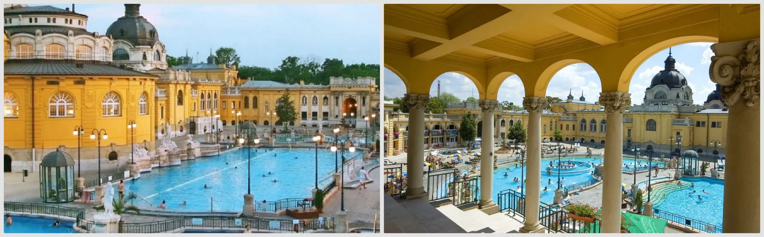 המרחצאות כוללות כ-15 בריכות סגורות ו-3 בריכות חיצוניות, מתחם ספא עם סאונה ושירותי עיסוי. בכניסה למרחצאות בעת קניית הכרטיסים בקופות תוכלו לבחור בין לוקר לתא הלבשה. אנו ממליצים על תא ההלבשה שאומנם עולה טיפה יותר אבל מספק לכם אינטמיות ופרטיות.