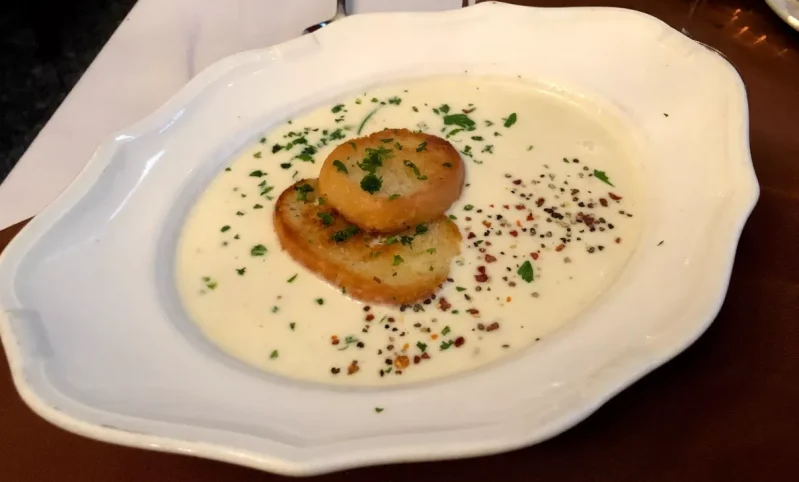 מרק עגבניות עם פרמזן בעלות של 3.290 פורינט, סטייק בקר נע בין 9.990 ל-12.990 פורינט, פנה קוטה מעלף לקינוח יעלה לכם 3.290 פורינט.