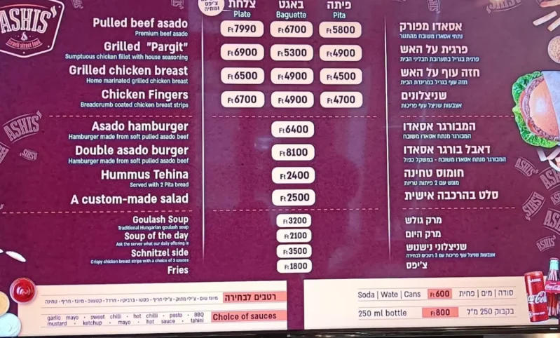 | מרק גולאש הונגרי | 4.860 פורינט |