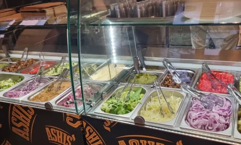 אשיז׳ מציעה אוכל רחוב ישראלי טיפוסי כגון שניצלונים, אסאדו מפורק, המבורגרים, חומוס, סלטים וצ'יפס.